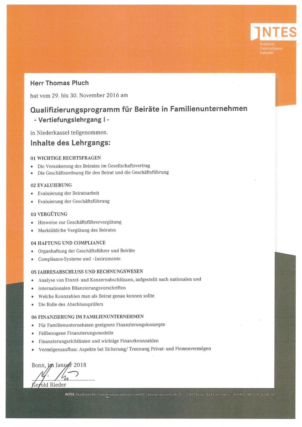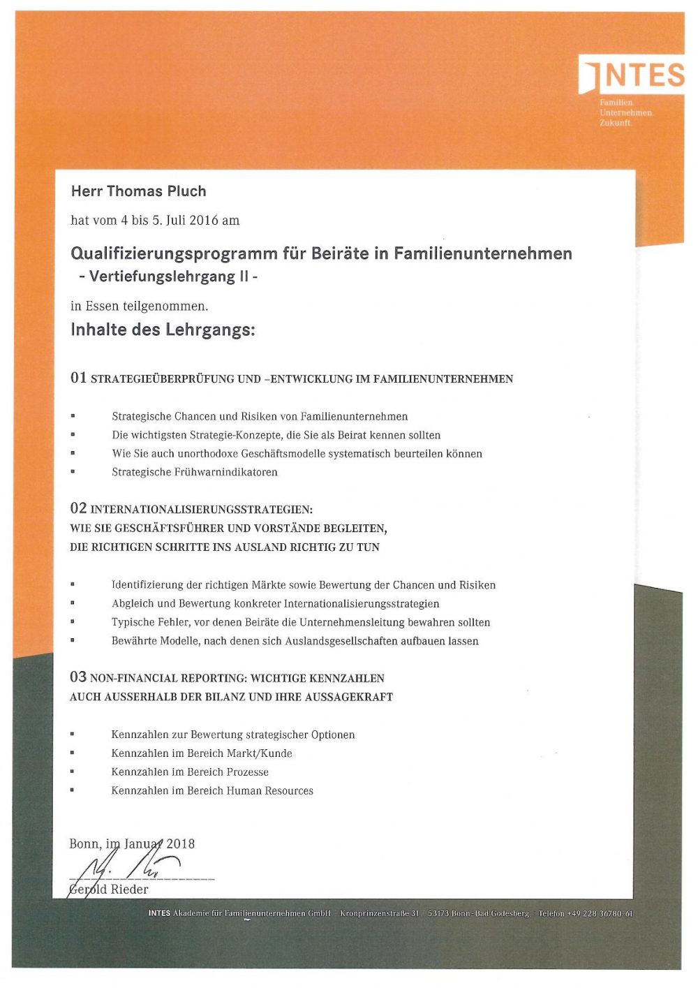 Training course by the INTES Academy, Bonn