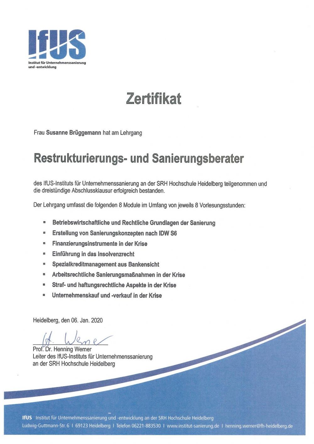 Training course by the IfUS Institute for Corporate Reorganisation at SRH University Heidelberg