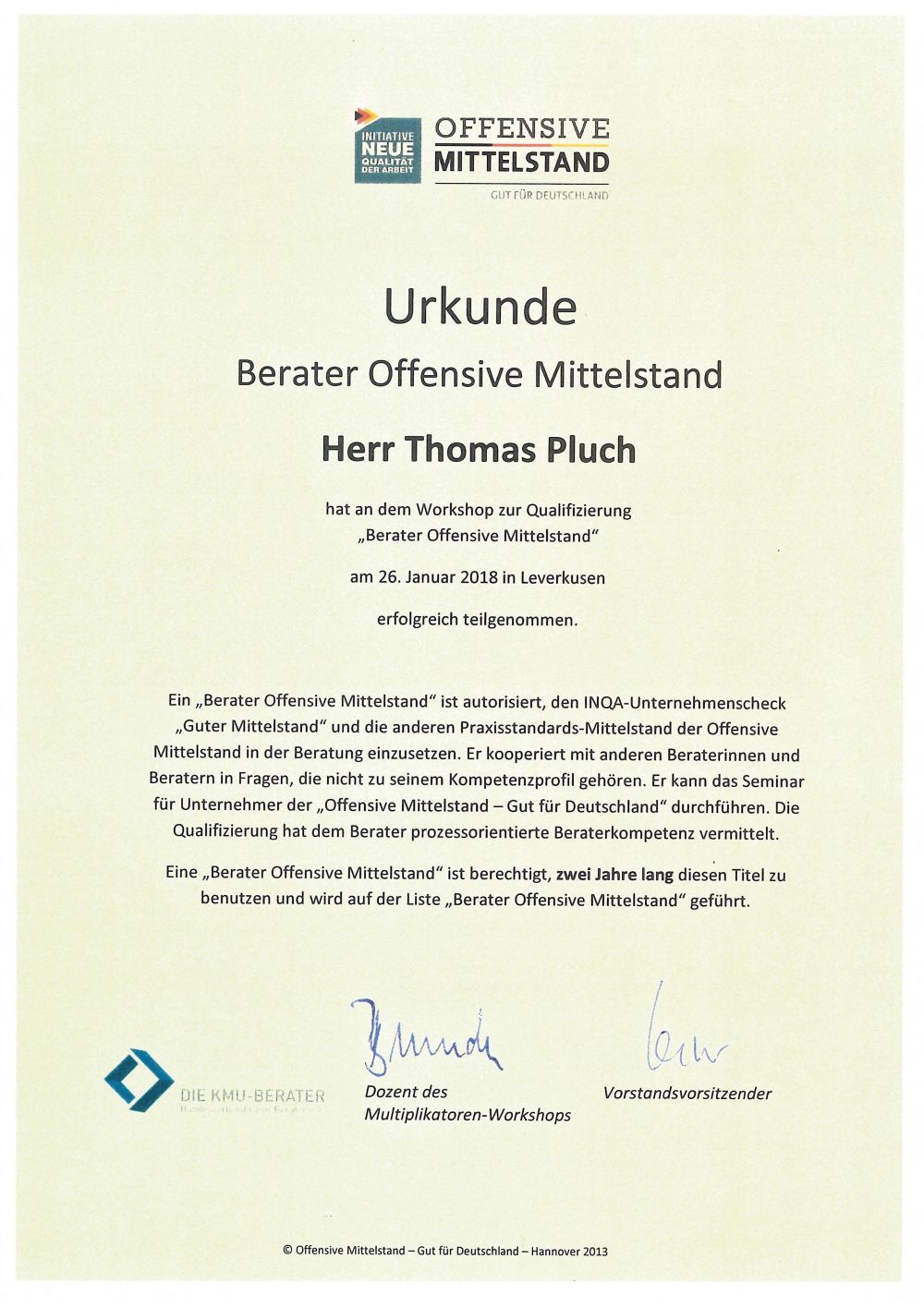 Training course by Offensive Mittelstand, SME consultant